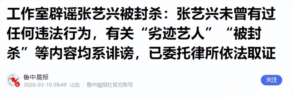 部分参考资料:张艺兴方发声明:“劣迹艺人”“被封杀”等均系诽谤;前不久张艺兴刚做了手术,正处于康复关键阶段——极目新闻张艺兴工作室:有关张艺兴“被封杀”等内容均系诽谤——界面快讯工作室辟谣张艺兴被封杀:张艺兴未曾有过任何违法行为,有关“劣迹艺人”“被封杀”等内容均系诽谤,已委托律所依法取证——鲁中晨报